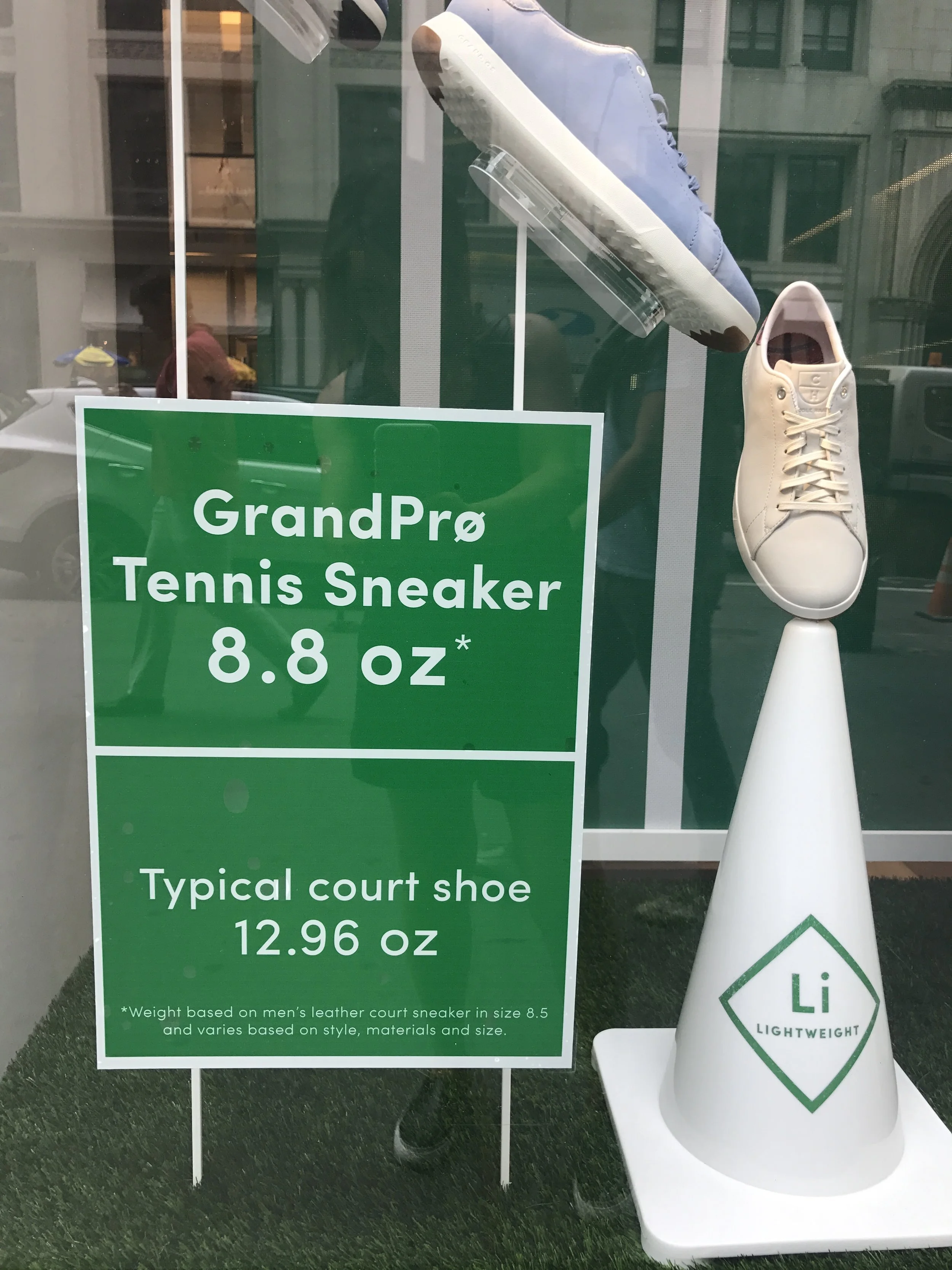 Sometimes an old-fashioned sign in a store window is compelling. (Cole Haan last month, below)